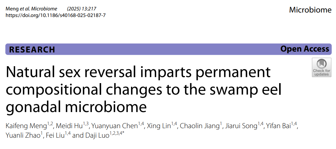 近日,該團(tuán)隊(duì)以“Natural sex reversal imparts permanent compositional changes to the swamp eel gonadal microbiome”為題在微生物學(xué)領(lǐng)域國(guó)際期刊Microbiome發(fā)表了最新研究進(jìn)展。