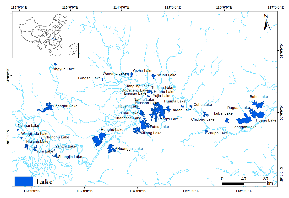 圖1 研究區(qū)域和湖泊
