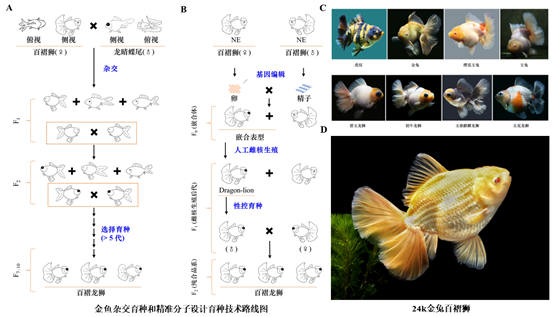 (2)建立了精準分子育種技術,在8個月內創(chuàng)制十余個高觀賞價值的金魚新品系,育種效率提高了幾十倍,初步實現(xiàn)金魚定制化育種。