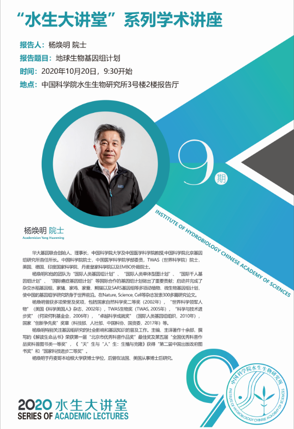 10月20日“水生大講堂”系列學(xué)術(shù)講座第9期預(yù)告