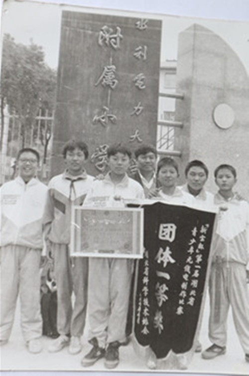1997年7月15日湖北省(新寶杯)第一屆青少年無線電制作賽在華師一附中舉行,我和副校長吳德厚帶著學(xué)生去比賽(他不在照片上)。傅力一等獎,蔣一珪的孫子蔣牧文和李晶二等獎,周澤華三等獎,學(xué)校獲小學(xué)團體第一名(一等獎大錦旗)。我獲一等獎指導(dǎo)教師獎。
