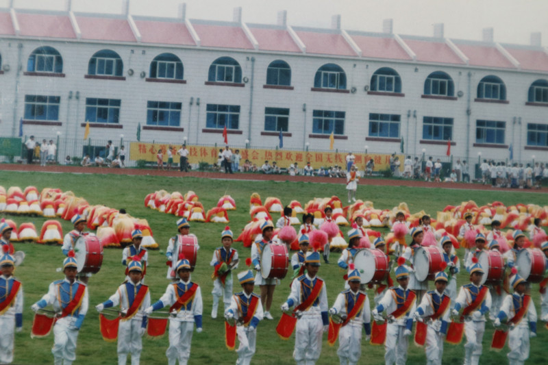8月16日隆重的開幕式。有中央的領(lǐng)導(dǎo)參加。圖為水院附小選手入場
