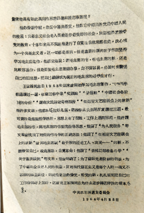 共產(chǎn)黨員王家楫同志的優(yōu)秀事跡(祁偉購于孔夫子舊書網(wǎng))
