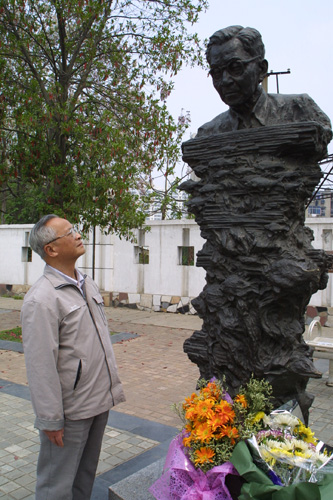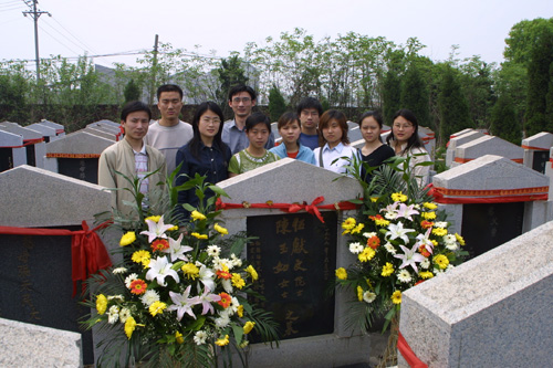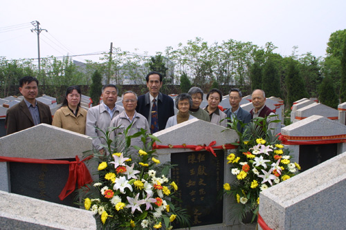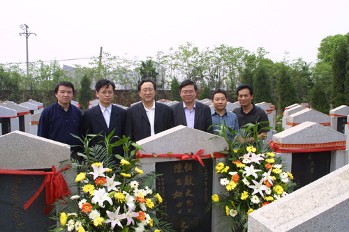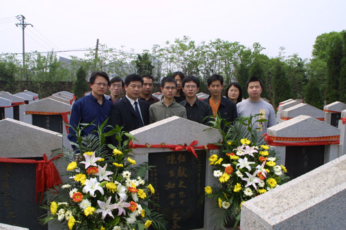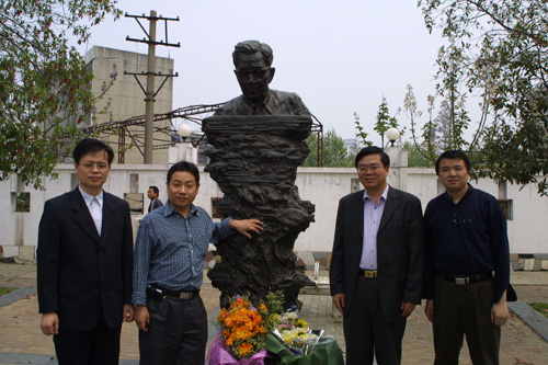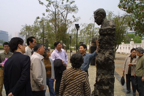 座談會(huì)結(jié)束后,大家來(lái)到伍老的墓地敬獻(xiàn)了花籃。回程路上,大家又在湖北科技名人雕塑園瞻仰了伍老的塑像。
