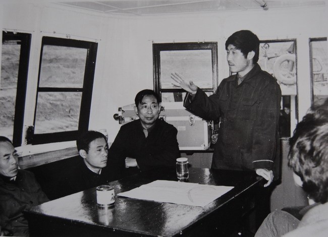 水生所白鱀豚研究組組長(zhǎng)陳佩薰(左二)召集會(huì)議討論捕豚方案