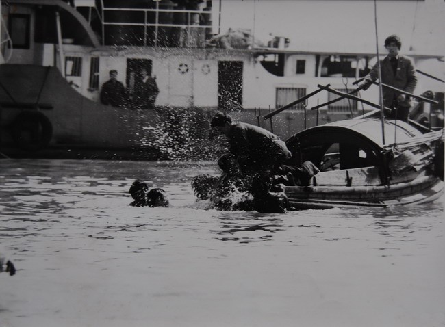 10時(shí),白鱀豚終于按照人的預(yù)想游進(jìn)了包圍圈。只見(jiàn)總指揮令旗用力向下一揮,放網(wǎng)船迅速向兩側(cè)分開(kāi),僅僅3分鐘,長(zhǎng)達(dá)3千米的圍網(wǎng)已圍成數(shù)道包圍圈,將兩頭豚圍在網(wǎng)中。此時(shí)大家是又高興,又緊張,圍住只是第一步,豚逃走怎么辦?網(wǎng)收不動(dòng)怎么辦?果然,網(wǎng)被江底的樹(shù)樁纏住了。如不迅速收網(wǎng),豚有可能尋機(jī)逃跑。在此千鈞一發(fā)之際,張國(guó)成、王丁同志迅速跳入冰冷刺骨的江水中,漁民也紛紛跳入江中。白鱀豚已是插翅難逃了,可它們突然孤注一擲,拼力向網(wǎng)上沖去。在水中的同志迅速向白鱀豚沖去,和船上的同志一起冒著危險(xiǎn)奮力將豚抬上船艙——此時(shí)是10時(shí)30分。