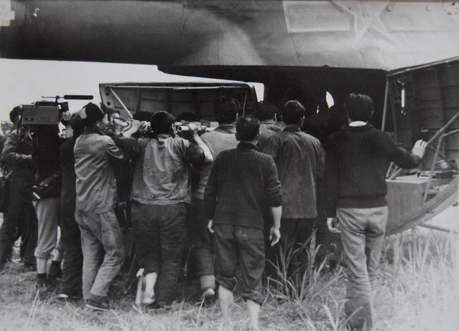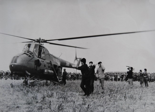3月31日11時(shí)30分,盼望已久的喜訊傳來(lái)了。20分鐘后,調(diào)度室回電:5404號(hào)專機(jī)已準(zhǔn)備就緒,機(jī)組人員已登機(jī)待發(fā)。13時(shí)2分,我來(lái)到王家墩機(jī)場(chǎng),13時(shí)5分登上專機(jī)。專機(jī)13時(shí)10分點(diǎn)火啟動(dòng),13時(shí)20分升空。方向:城陵磯;高度:1000m;速度:160公里/小時(shí)。14時(shí)40分,專機(jī)來(lái)到城陵磯西北約5公里的觀音洲上空,低空盤(pán)旋后準(zhǔn)確著陸于紅旗招展的降落場(chǎng)。