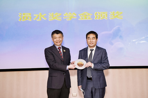 殷戰(zhàn)所長向“涢水獎學(xué)金”的捐設(shè)人王文召先生頒發(fā)“涢水獎”捐資紀(jì)念牌