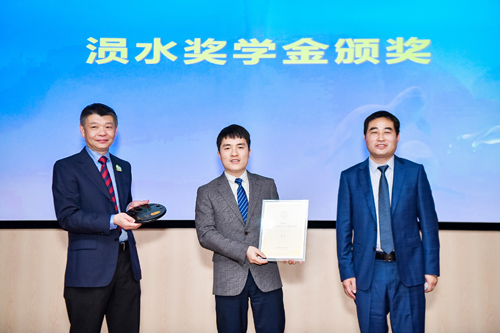 殷戰(zhàn)所長向“涢水獎學(xué)金”的捐設(shè)人王文召先生頒發(fā)了“涢水獎”捐資紀(jì)念牌。并同王文召先生一起,為2020年度“涢水獎”獲得者畢業(yè)生張東博士頒獎。