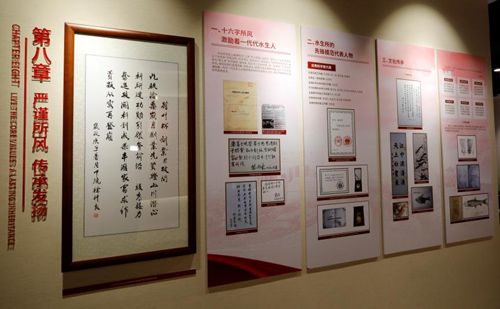 圖文版的3個(gè)板塊為“歷史悠久 源遠(yuǎn)流長”、“創(chuàng)新卓越 魚躍碧浪”和“繼往開來 揚(yáng)帆遠(yuǎn)航”,分別介紹了水生所的歷史、現(xiàn)狀和未來規(guī)劃;43件仿真復(fù)原史料是從數(shù)千件歷史文獻(xiàn)、檔案資料中精選出來的珍貴資料,時(shí)間從1944年到2009年,內(nèi)容涵蓋水生所歷史上的一些重要事件、文章及人物等;實(shí)物包括王家楫先生使用過的臺(tái)扇、饒欽止先生88歲高齡時(shí)親手制作的木刻牌匾等;3個(gè)沙盤分別為水生所園區(qū)、官橋基地和梁子湖基地微縮景觀;投影屏和觸摸屏循環(huán)播放水生所和幾大平臺(tái)的介紹視頻,同時(shí)還將水生所歷史照片展導(dǎo)入觸摸屏供長期展示;兩個(gè)小品一個(gè)是生態(tài)水族缸,活體展示部分水生植物、稀有鮈鯽等,另一個(gè)是精選的攝影作品展示。