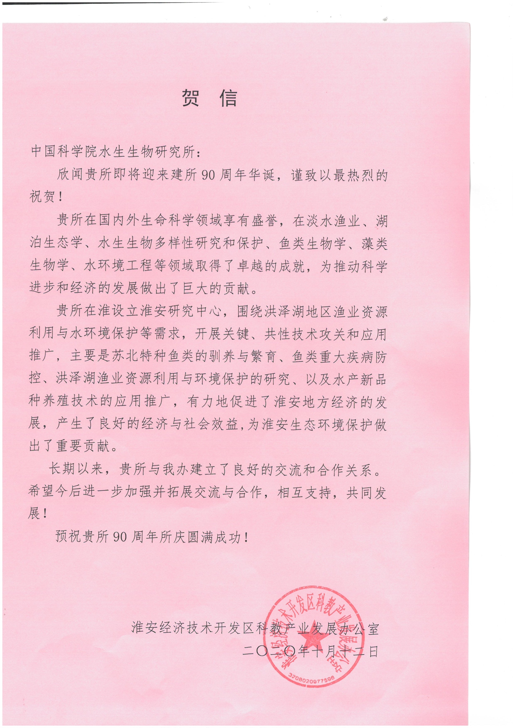 淮安經(jīng)濟(jì)技術(shù)開發(fā)區(qū)科教產(chǎn)業(yè)發(fā)展辦公室賀信