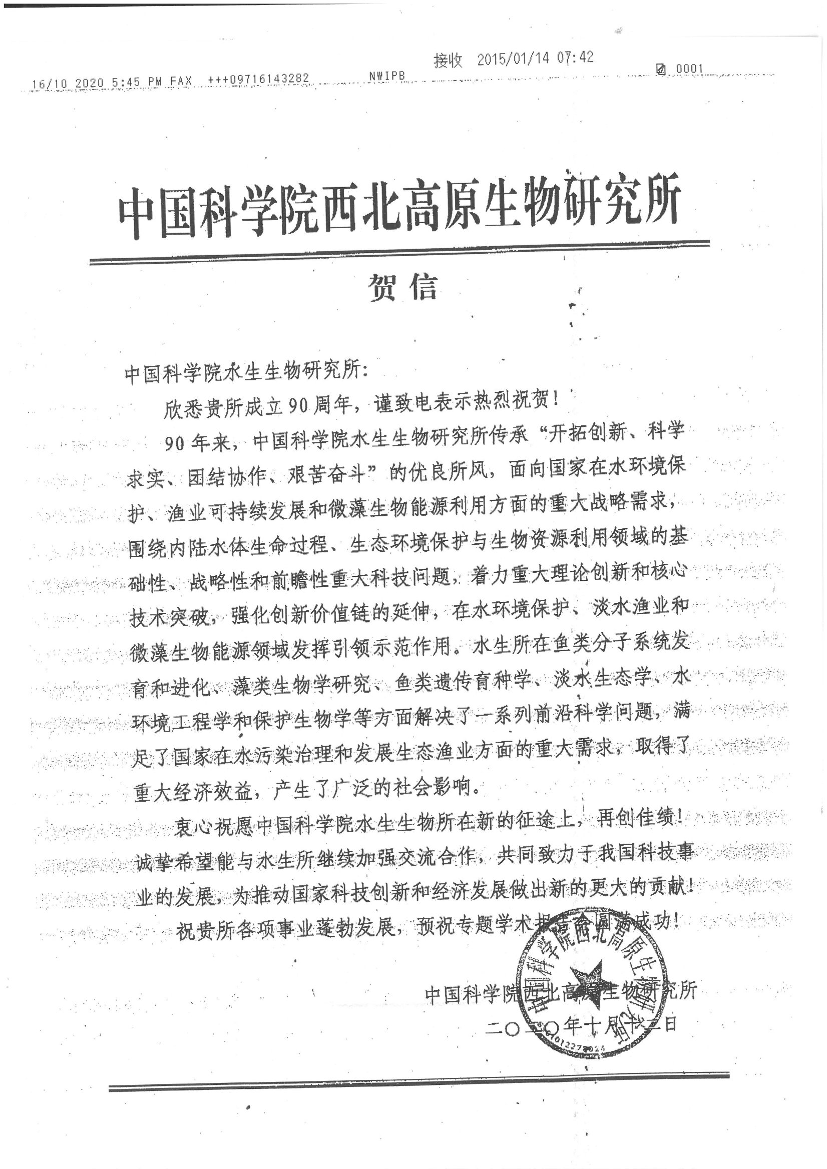 中國科學院西北高原生物研究所賀信