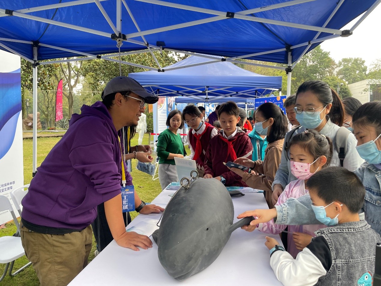 水生所在武漢分院的組織下積極參與,布設(shè)“長江江豚仿真模型”“金秋時(shí)節(jié)話螃蟹”2個展區(qū),通過科學(xué)展板、仿真模型、標(biāo)本、活體生物展示等方式,吸引大批公眾,活動場面熱鬧非凡。